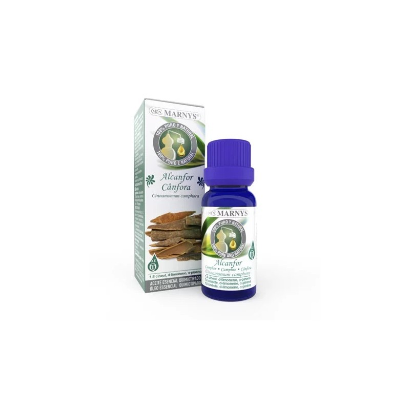El Aceite Esencial de Alcanfor MARNYS® es 100% puro y quimiotipado, es decir, tiene una composición definida y es 100% de origen natural, el Alcanfor se ha obtenido por destilación por arrastre de vapor de agua y no ha sido desnaturalizado ni mezclado con otros aceites, lo que asegura las propiedades del aceite esencial.