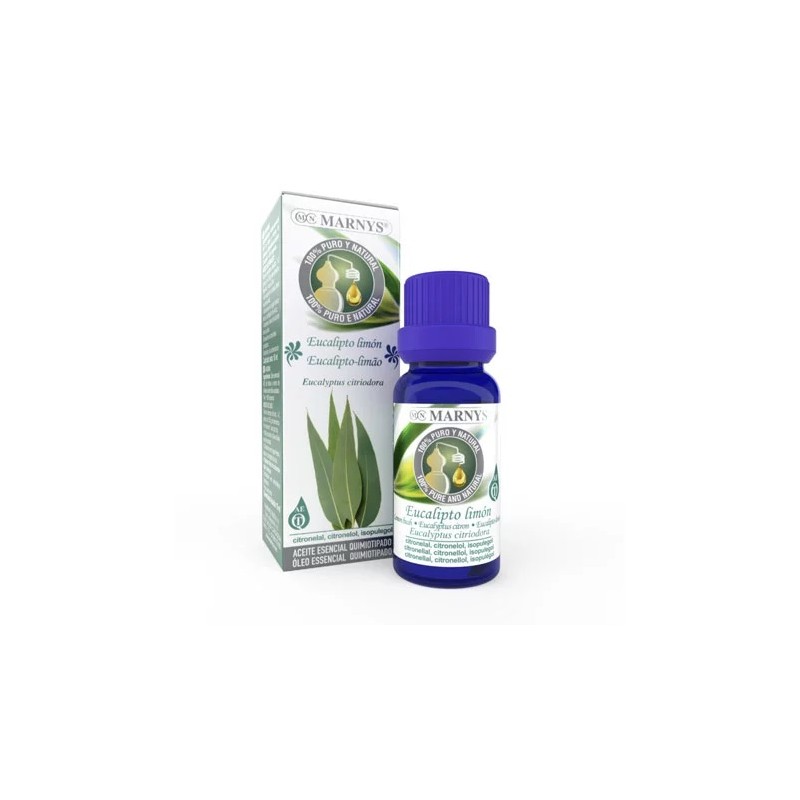 El Aceite Esencial de Eucalipto Limón MARNYS® es 100% puro y quimiotipado, es decir, tiene una composición definida y es 100% de origen natural. El Eucalipto Limón se ha obtenido por destilación por arrastre de vapor de agua y no ha sido desnaturalizado ni mezclado con otros aceites, lo que asegura las propiedades del aceite esencial.