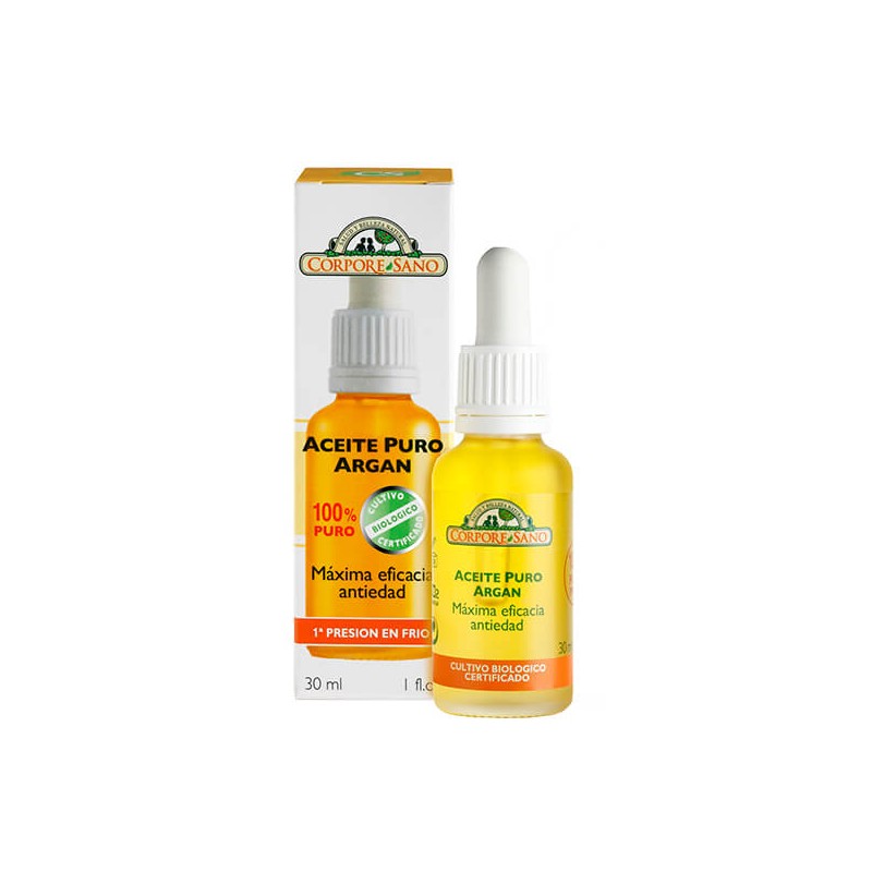 El Aceite 100% Puro de Argán de Corpore Sano es muy antioxidante, lo que significa que es capaz de combatir los radicales libres para retardar la oxidación y degeneración de los tejidos. Es el gran aliado contra el envejecimiento. El Argán, por su elevado contenido en ácidos grasos insaturados oleico (omega-9) y linoleico (omega-6) y vitamina E presenta propiedades reestructurantes, nutritivas, regeneradoras de la piel y antioxidantes que actúan protegiendo la piel de un envejecimiento prematuro. Este aceite es el mejor antioxidante para la piel y máxima eficacia antiedad. Es un producto indicado para aquellas personas que buscan un cuidado facial libre de parabenos, colorantes, siliconas, PEGs y ftalatos.