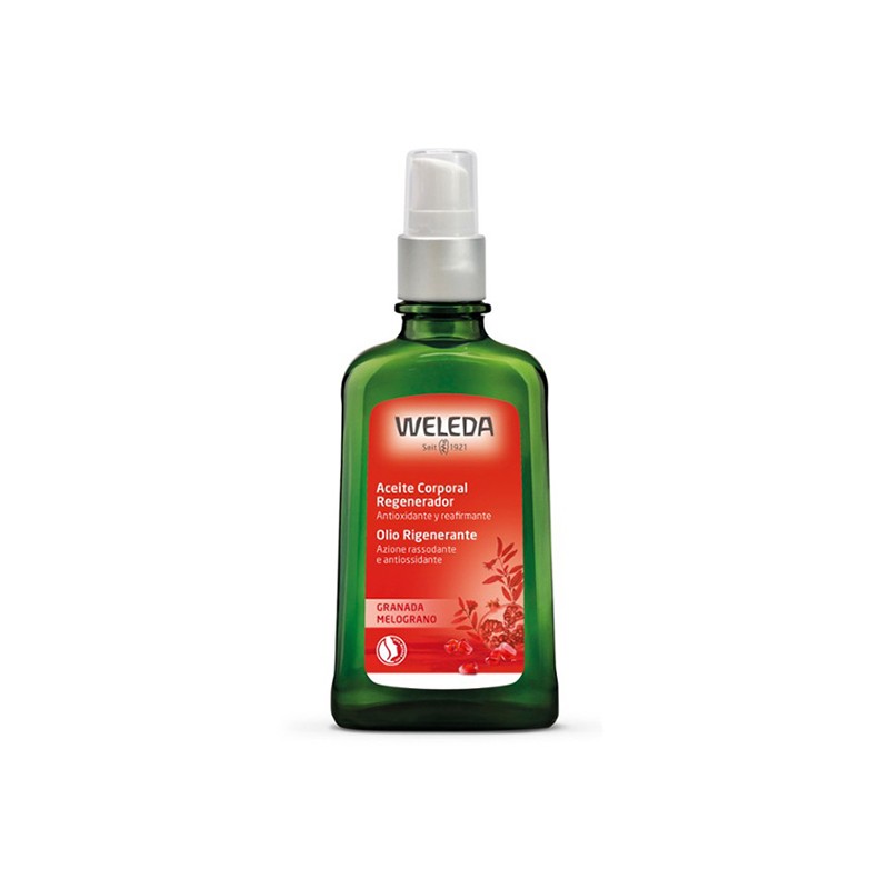 Tratamiento corporal antioxidante intensivo. Con aceite de semillas de granada bio, este aceite corporal estimula la renovación celular y regenera la piel, retardando los signos del envejecimiento cutáneo. Protege la piel del desecamiento y mejora la elasticidad.