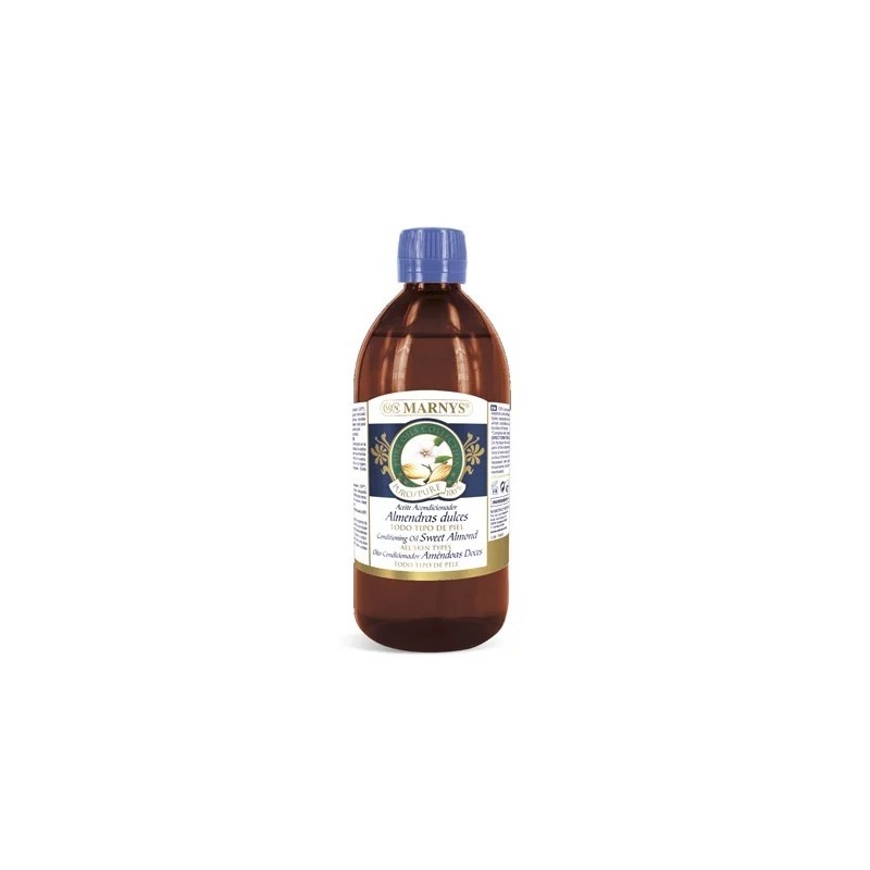 El Aceite de Almendras Dulces MARNYS®, Aceite Acondicionador, es vegetal 100% y se obtiene de las semillas maduras de Prunus amygdalus dulcis. Es adecuado para todo tipo de pieles, en especial la piel seca, sensible e irritable, producida en épocas invernales. Proporciona elasticidad y suavidad a la piel.