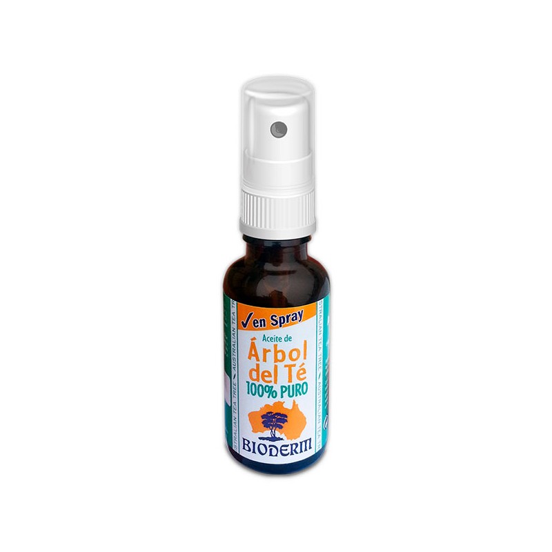 Higienizante corporal, para el cuidado de la piel. Los aborígenes australianos lo han utilizado tradicionalmente por sus excelentes propiedades como higienizante corporal, respaldadas ahora por la ciencia moderna en numerosas investigaciones. Belleza e higiene de la piel. Problemas de la piel: antiséptico, seborregulador, desodorante, regenerante y cicatrizante. Coadyuvante en picaduras de insectos. Cuidado de las uñas con impurezas. Belleza e higiene del cuero cabelludo: equilibrante capilar (pelo seco o graso), elimina descamaciones e higieniza el cabello expuesto a parásitos. Higiene bucal: cicatrizante y antiséptico para aftas o llagas, reparador y fortalecedor de encías y mucosa.Composición de Srpay Árbol del Té 100% puro 30 ml.