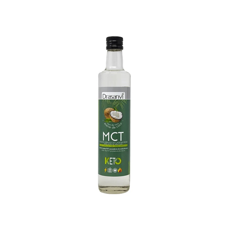 MCT (Ácidos grasos de cadena Media) son una fuente de energía de fácil absorción, entre los que destacan el Ácido caprilico C8 (70%) y cáprico C10 (30%)Nuestros MCT son extraídos exclusivamente del Aceite de Coco, cumpliendo con la más alta calidad. Este MCT Oil no posee sabor ni color, por lo que combina perfectamente con gran variedad de alimentos y bebidas.Composición de Aceite de coco MTC KETO 500ml