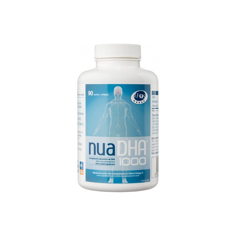 NuaDHA®1000 de Nua es un complemento alimenticio elaborado con DHA, un ácido graso con reconocidos beneficios a nivel cardiovascular, cognitivo y visual. Contiene 1.120 mg de omega-3/perla, de los cuales 1.050 mg son DHA. Máxima pureza: > 90% de omega-3 por perla. Con vitamina E natural sin soja. Elaborado con pescado salvaje (anchoveta) de pesca sostenible y proceso de purificación y extracción eco-sostenible. Sin regusto a pescado. Envases biodegradables. Sello de calidad IFOS 5 estrellas (libre de metales pesados etc.) Sello NSF Certified for Sport’ (libre sustancias dopantes- 90 caps).