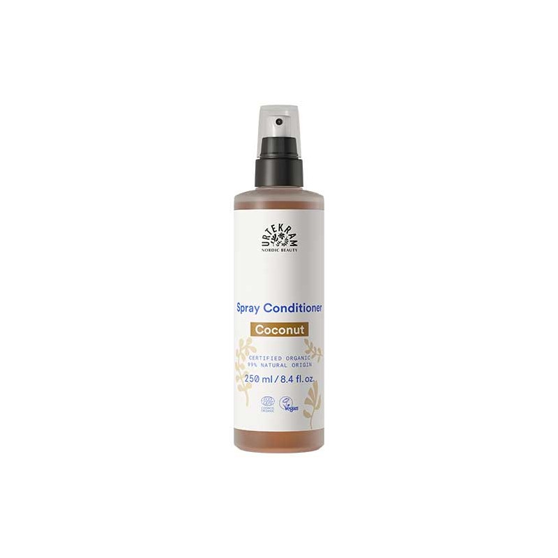 El acondicionador en spray sin enjuague de coco URTEKRAM® con néctar de coco orgánico ayuda naturalmente a equilibrar la humedad y prevenir la sequedad en cabellos normales. Tiene un dulce y maravilloso aroma natural a coco y deja tu cabello suave y fácil de peinar.