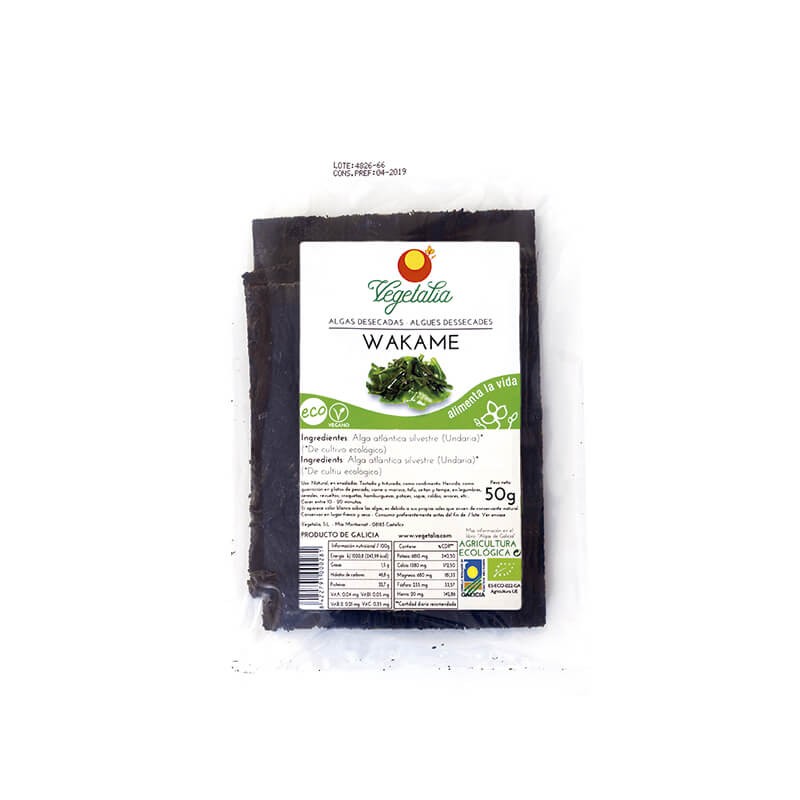 Alga wakame desidratada de producción ecológica. Producto de Galicia.