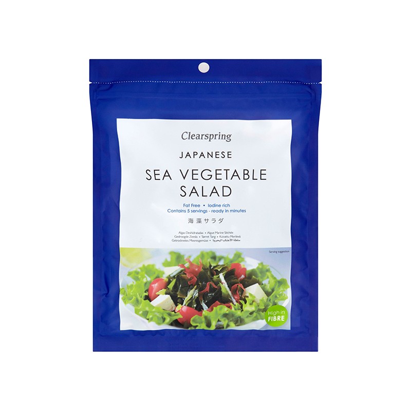 Ensalada de algas japonesas crudas. Simplemente remoje, sazone y sirva solo o con verduras de ensalada. Cada paquete de 25g contiene 5 porciones y la ensalada aumenta considerablemente en volumen cuando se empapa.Composición de ENSALADA JAPONESA DE ALGAS 25 gr.