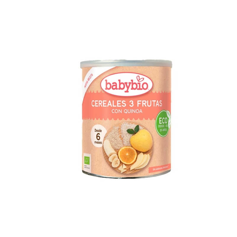 Preparado de cereales con plátano, naranja y pera. Para niños a partir de 8 meses. Babybio selecciona cuidadosamente sus ingredientes, 100% procedentes de agricultura ecológica.