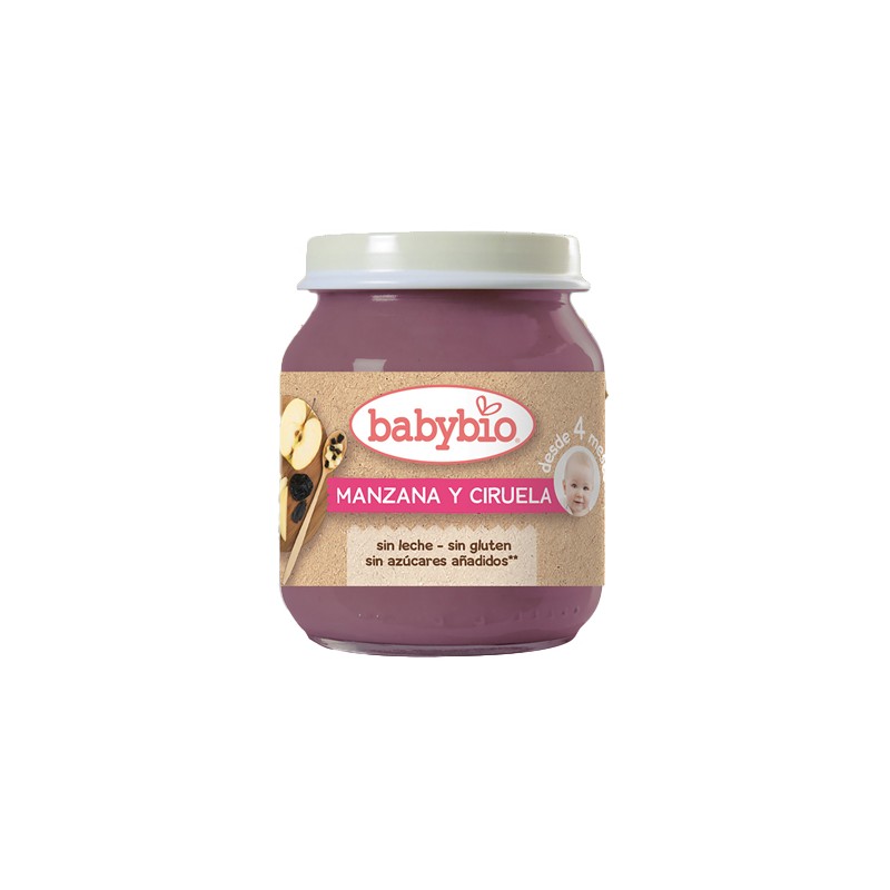 Puré ecológico de manzana y ciruela para bebés a partir de 4 meses. Ingredientes seleccionados cuidadosamente, 100% procedentes de agricultura ecológica.
