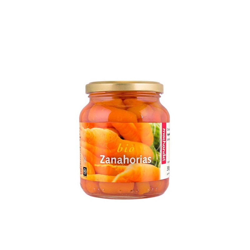 Zanahorias troceadas en tarro. Elaboración artesanal de productos procedentes de agricultura ecológica-dinámina. Producción con fuentes de energía natural. Electricidad limpia, energía solar, eólica e hidráulica.
