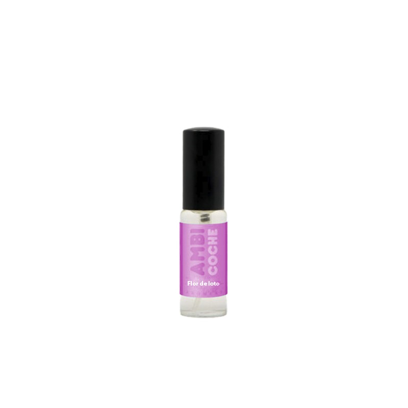 Ambientador para coche en frasco rellenable de 20 ml con spray a rosca con olor a flor de loto.