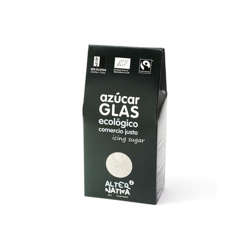 Azúcar glas Ecológico de comercio justo, ideal para decorar tus pasteles y postres. Azúcar extraído directamente de la caña, sin tratamientos químicos, de Agricultura Ecológica.