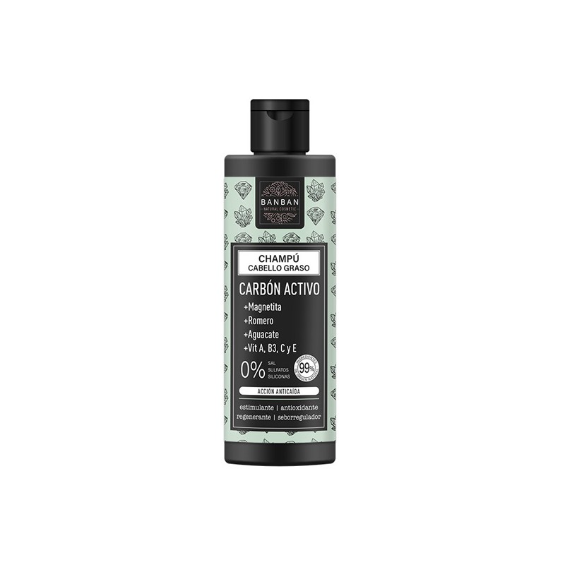 Para cabellos grasos.Composición de Champú Anticaída Carbón Activo 250 ml.