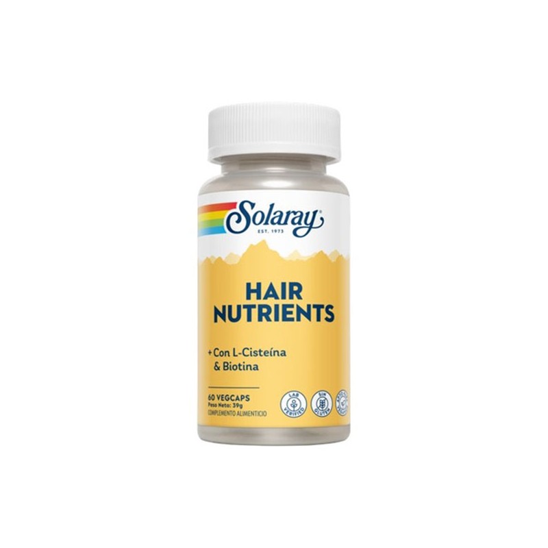 Hair Nutrients de Solaray es una combinación de vitaminas, minerales y hierbas destinados a evitar la caída del cabello, fortalecerlo y favorecer su crecimiento. Contiene L- Cisteína, componente importante para la síntesis de la queratina, una proteína que forma parte de la estructura de la piel, el pelo y las uñas.
