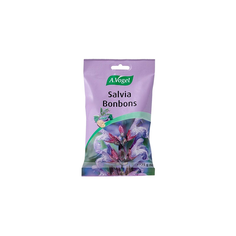 Salvia Bonbons son caramelos balsámicos rellenos de tintura de Salvia officinalis fresca de cultivo biológico certificado, miel pura de abeja y polvo de acerola.