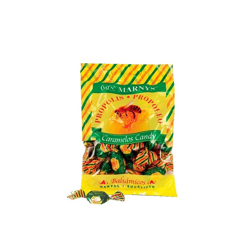 Los Caramelos de Propóleo, Miel, Mentol y Eucalipto de MARNYS® combinan la propiedad balsámica de la miel, la actividad fenólica del propóleo y el frescor del mentol y el eucalipto.
