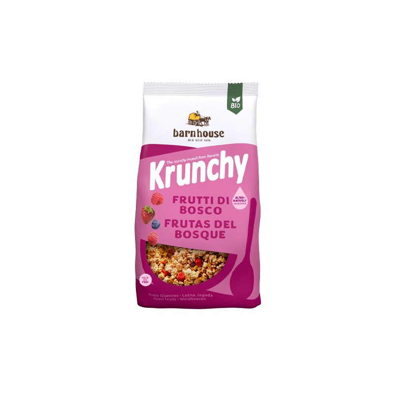 Muesli krunchy sun frutos del bosque es una rica combinación avena, avena de arroz y bayas silvestres para comer en cualquier momento del día.