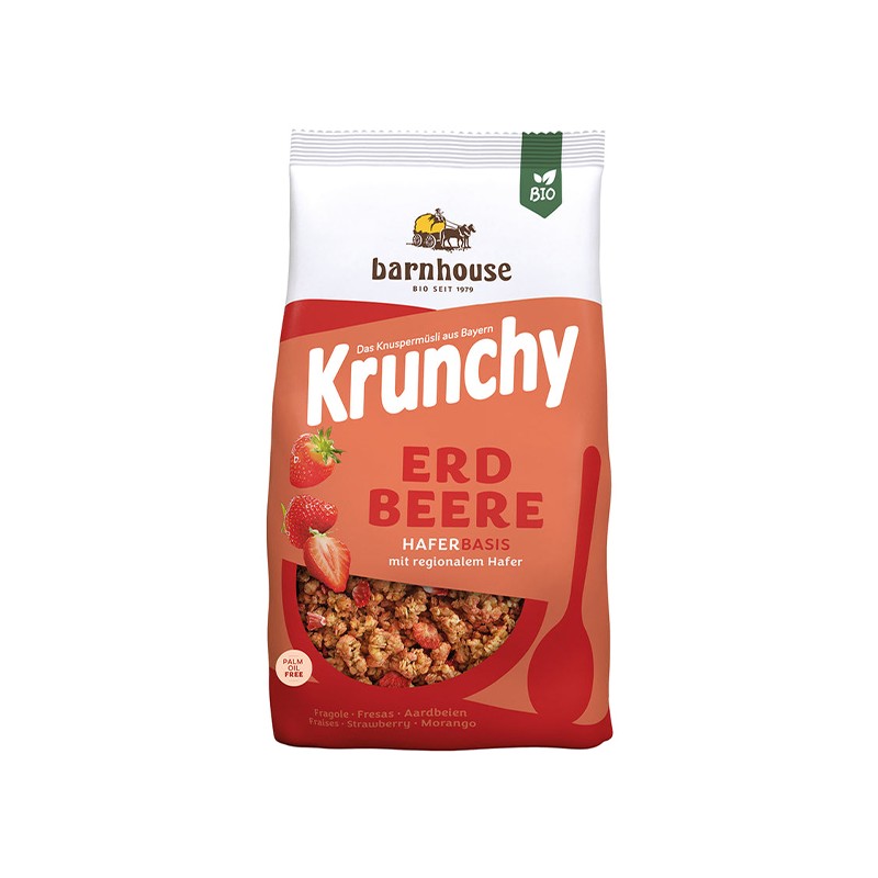 Muesli con avena y rodajas de fresa liofilizada que le aporta un fantástico aroma. Sin aceite de palma.