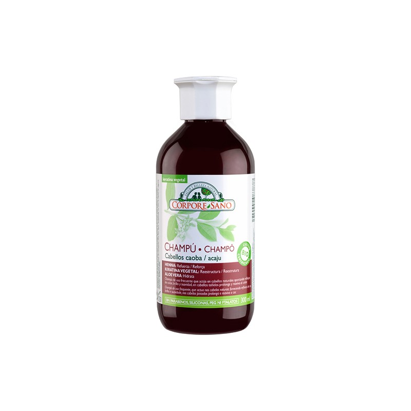 Champú Henna Caoba de Corpore Sano es un champú para cabellos caoba, naturales o teñidos. Reaviva y protege el color, cabello suave y sano.