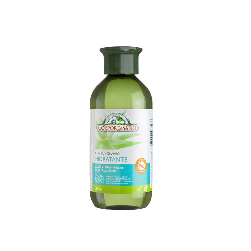 Champú Hidratante con Aloe Vera y Goji Ecocert de Corpore Sano champú ecologico y natural con la maxima certificación de Ecocert. El Aloe Vera, de cultivo biológico certificado, es rico en aminoacidos, minerales y vitaminas.