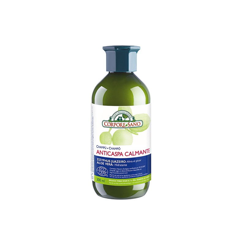 Champú Anticaspa Calmante Ecocert de Corpore Sano champú ecológico y natural con la máxima certificación. La aplicación continuada del champú anticaspa reduce la caspa de forma duradera.