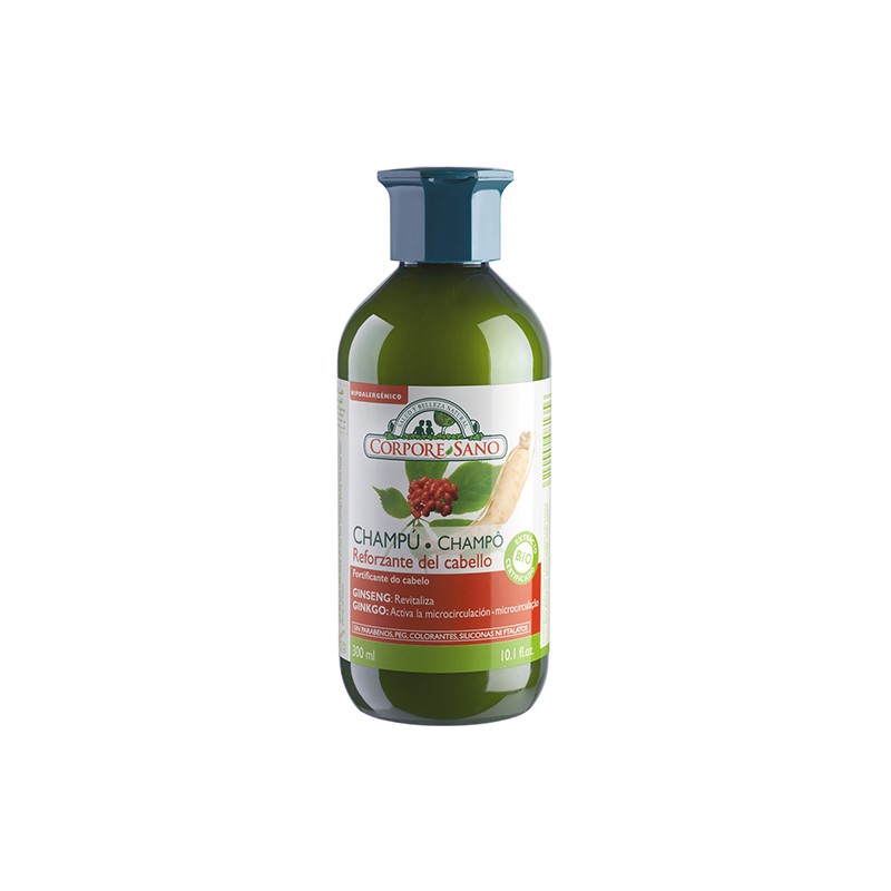 El Champú Reforzante con Ginseng, Eleuterococo y Ginkgo de Corpore Sano champú ha sido formulado con extractos naturales y tensoactivos derivados de origen vegetal que cuidan el cabello y el cuero cabelludo con la mayor eficacia.