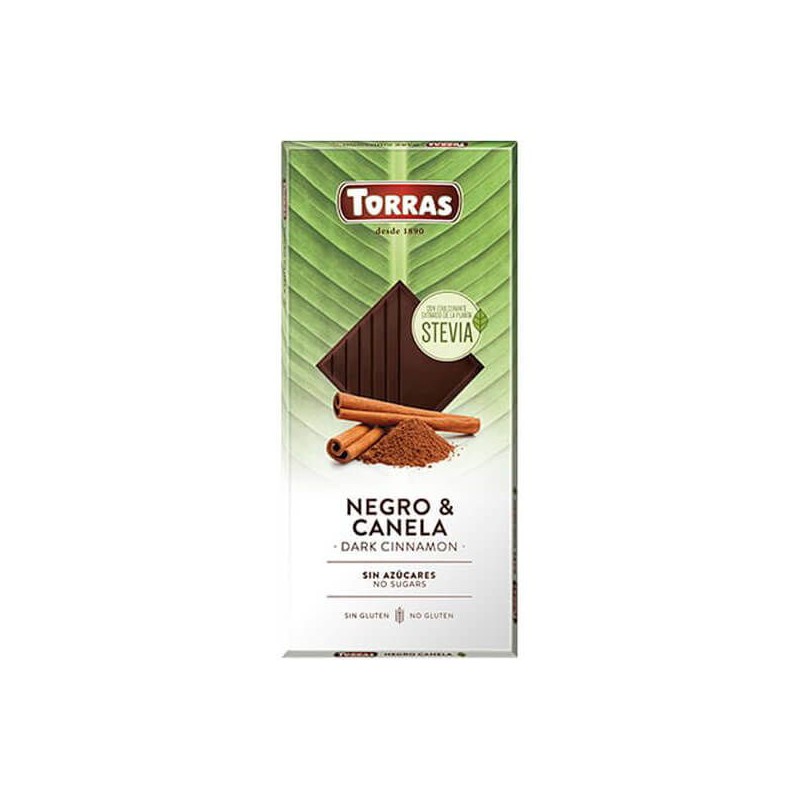Chocolate negro con canela edulcorado con eritritol y Stevia.