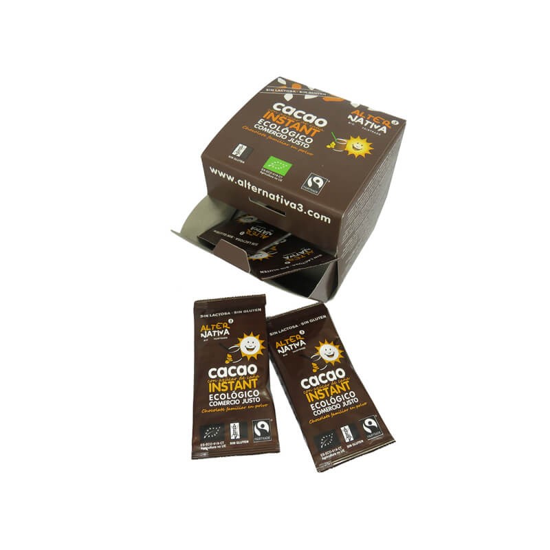 De disolución inmediata tanto en leche fría como caliente.Composición de Chocolate a la Taza en monodosis