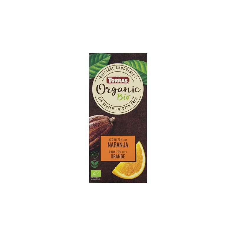 Más información de TORRAS-CHOCOLATE NEGRO 70% CON NARANJA S/G 100 Grs. BIO
