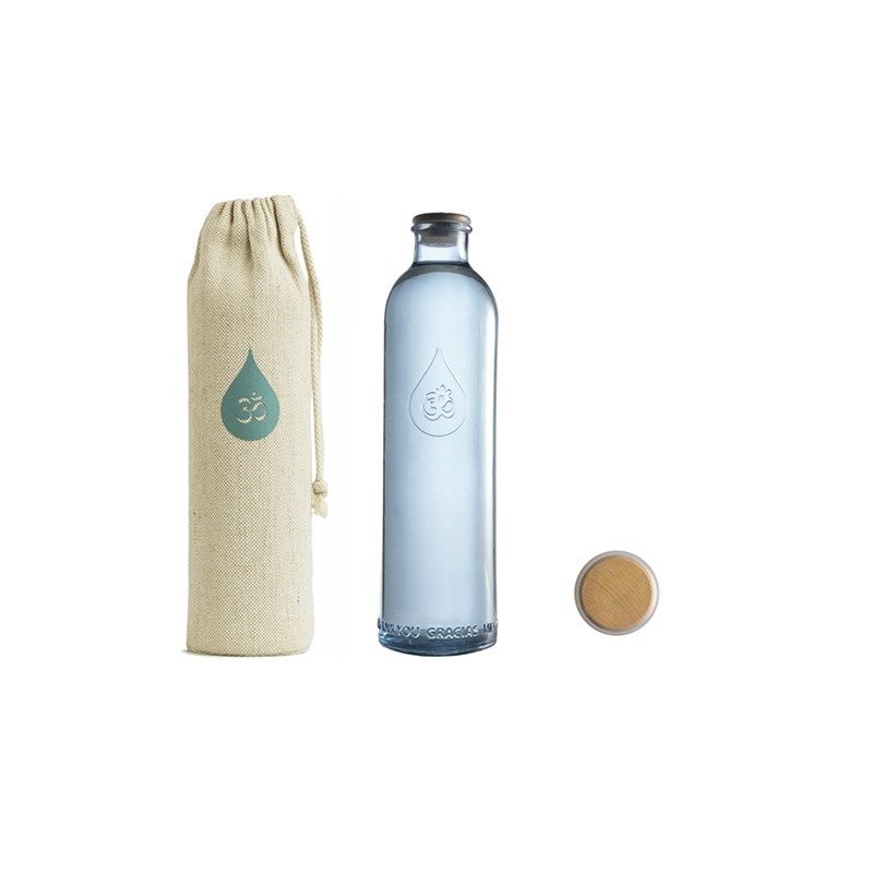 Botella de vidrio reciclado Om Water Gratitude 1,2L con tapón hermético