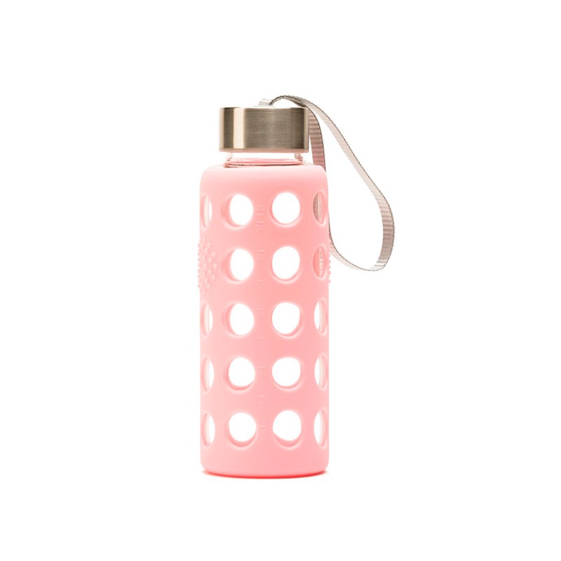 BOTELLA BOROSILICATO FUNDA SILICONA 300 Ml. - ROSA