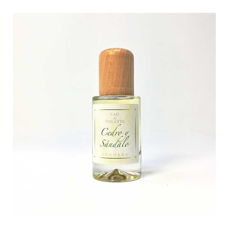 Eau de Toilette con aroma a cedro y sándalo, con spray y tapón de madera.