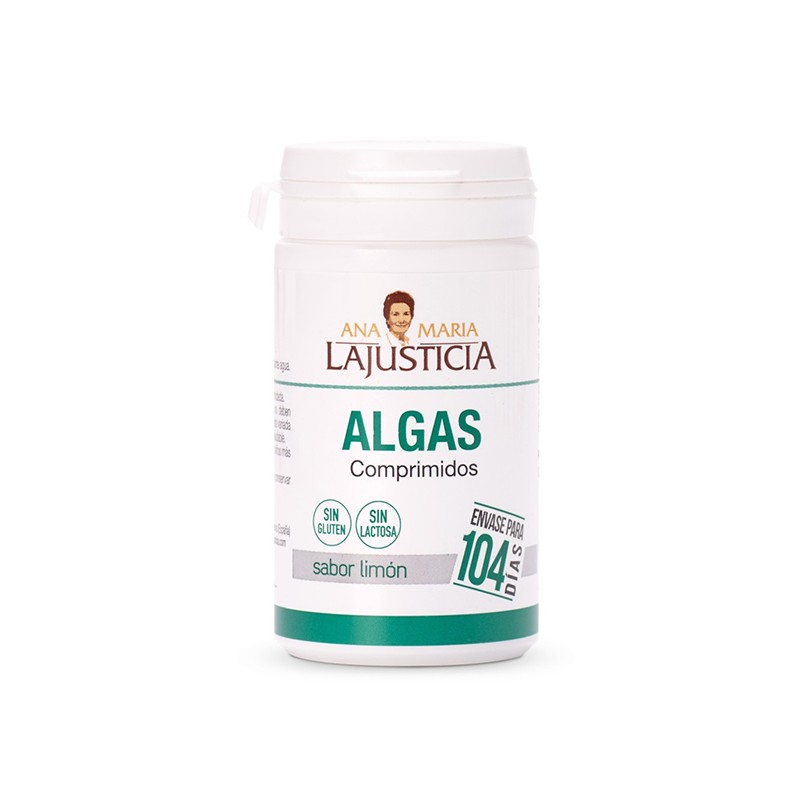 Complemento alimenticio rico en oligoelementos, sales minerales (yodo, potasio, bromo, cloro, calcio, hierro, sílice), vitaminas y provitaminas A y D. El yodo es indispensable para la formación de las hormonas tiroideas T3 y T4 o tiroxina, y ésta interviene en la combustión de los hidratos de carbono y las grasas. Su carencia conduce al bocio y a trastornos de la tiroides. También tiene un papel importante en la eliminación de líquidos y en el peristaltismo intestinal. Complementa eficazmente las dietas pobres en pescado.Composición de Algas 104 comprimidos
