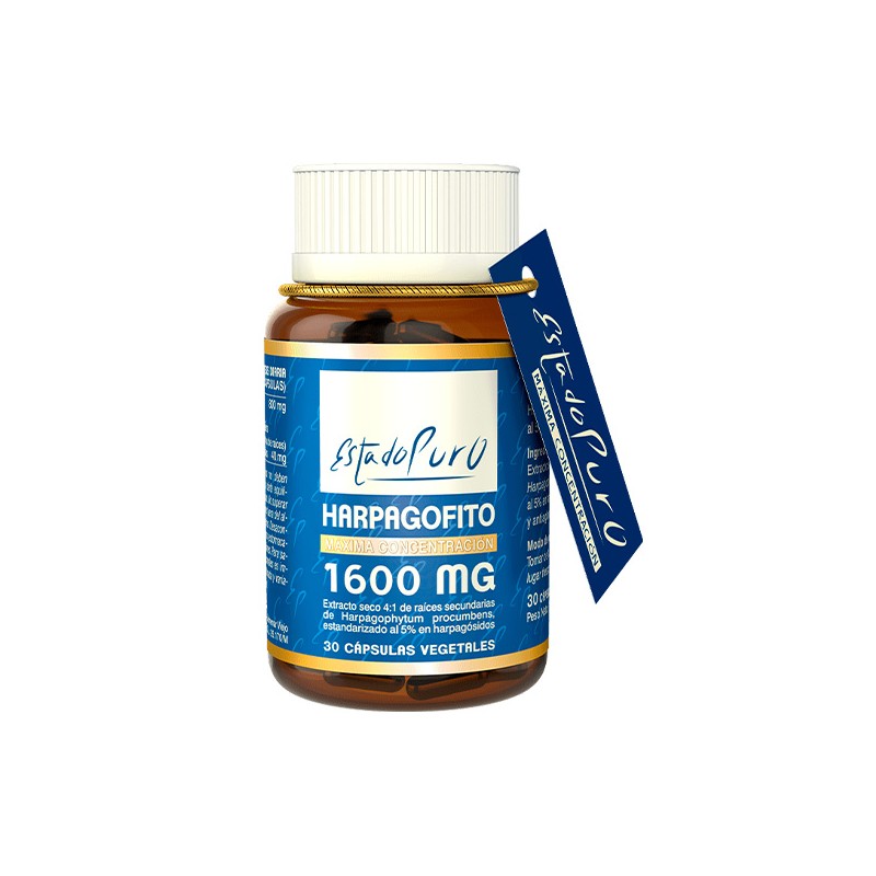 Complemento alimenticio a base de extracto seco 4:1 de raíces secundarias de Harpagophytum procumbens, estandarizado al 5% en harpagósidos.