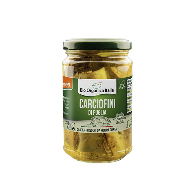 Las alcachofas representan una excelencia de la tradición gastronómica. La realización de este producto típico de Apulia (Italia) comienza en septiembre, en este mes comienza el cultivo de la alcachofa en las granjas familiares, y luego continúa con un cuidad oso riego y seguimiento hasta que la preciada "alcachofa" florece en primavera.