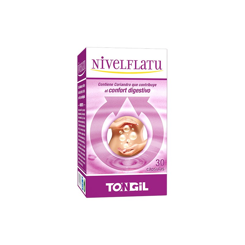 Contiene Alcaravea que contribuye a las funciones digestivas y alivia la sensación de plenitud y de hinchazón. Contiene Coriandro, que contribuye al confort digestivo y ayuda a mantener un balance normal de gases en el tracto gastrointestinal. Contiene Hinojo, que ayuda con las flatulencias y los espasmos abdominales.Composición de Nivelflatu 30 cápsulas