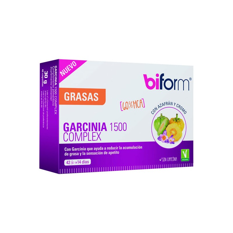 Garcinia Complex 1500 es un complemento alimenticio a base de extractos de Garcinia y azafrán, con cromo. La Garcinia, también llamada tamarindo malabar, es un arbusto que crece en sudeste asiático.