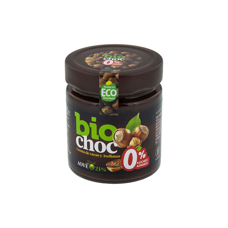 Biochoc crema de cacao con avellanas 0% azúcar añadido con un 30% de AOVE.