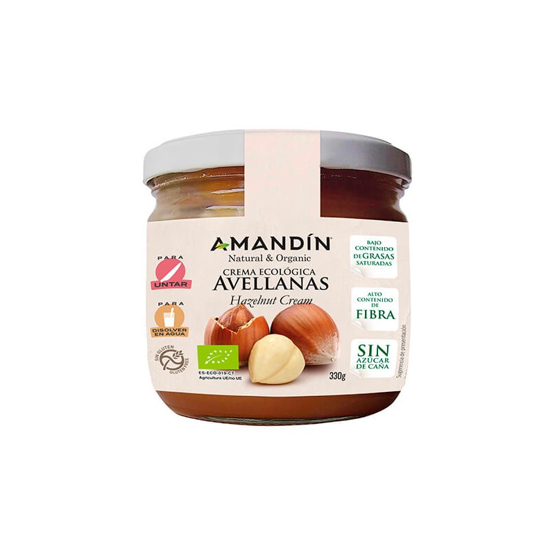 Crema de Avellanas de Amandin es ideal para untar en pan, tostadas, rebanadas… y también disolver en agua para preparar una exquisita bebida tan solo disolviendo 2 cucharadas de producto en un vaso de agua fría.