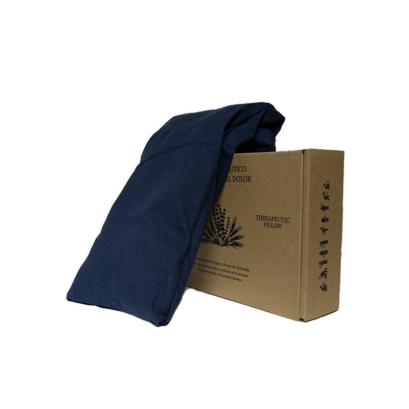 Cojín aromático y terapéutico con semillas de trigo y flores de lavanda, con funda lavable de algodón 100%. Ideal para calmar el dolor.