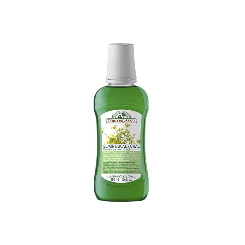Elixir Bucal Mirra, Propolis y Hinojo de Corpore Sano refuerza las encías y combate las caries y la placa dental. Tonifica y deja el aliento limpio y fresco.