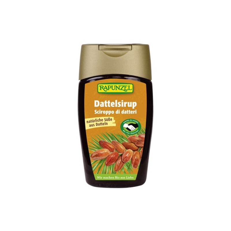 Sirope Datil de Rapunzel gracias a esta naturaleza dulce del dátil, se ha creado el Sirope de Dátil Rapunzel de Biocop, el cual utiliza dátil 100% natural y orgánico, siendo este, proveniente de cultivos ecológicos del Norte de África, específicamente Túnez, además en su proceso de elaboración se utiliza aparte del fruto, agua, lo que da como resultado un maravilloso producto natural y totalmente libre de conservantes, edulcorantes, colorantes o cualquier otro tipo de aditivo artificial.
