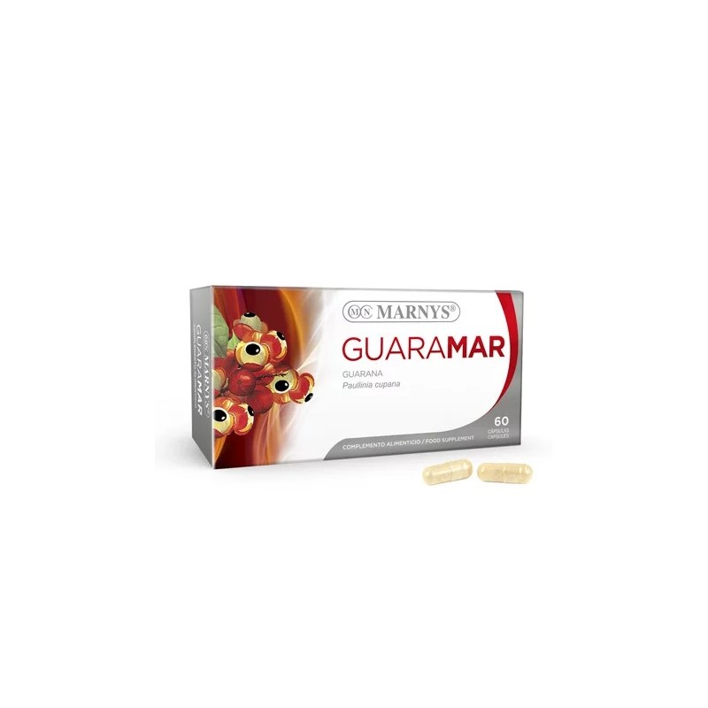 El Guaraná (Paullinia cupana) contiene múltiples sustancias bio-activas en las semillas: 6-8% de cafeína, teofilina, teobromina, terpenos, flavonoides y saponinas.El ingrediente principal de MARNYS® Guaramar es el Guaraná, que revitaliza la energía corporal por las siguientes propiedades:
