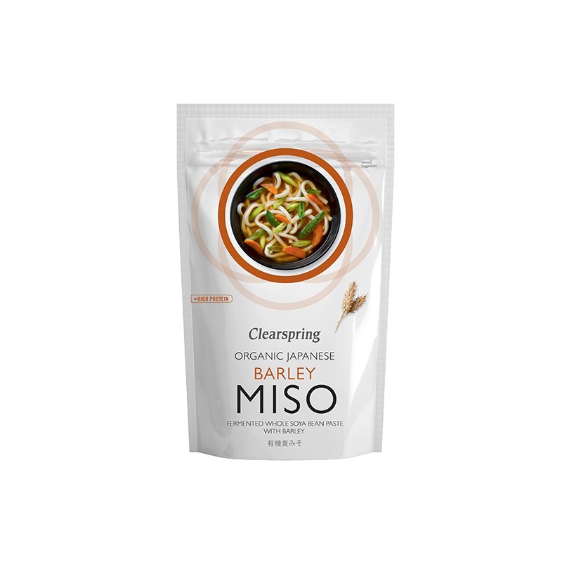 El miso tradicional del Japón rural. Este magnífico miso se elabora por métodos tradicionales y está totalmente envejecido en barriles de madera de cedro de 1 a 2 años. Aporta un rico sabor a las salsas, platos horneados, sopas y frijoles. También se puede usas para elaborar una excepcional sopa de miso.Composición de Barley Miso bio 300gr