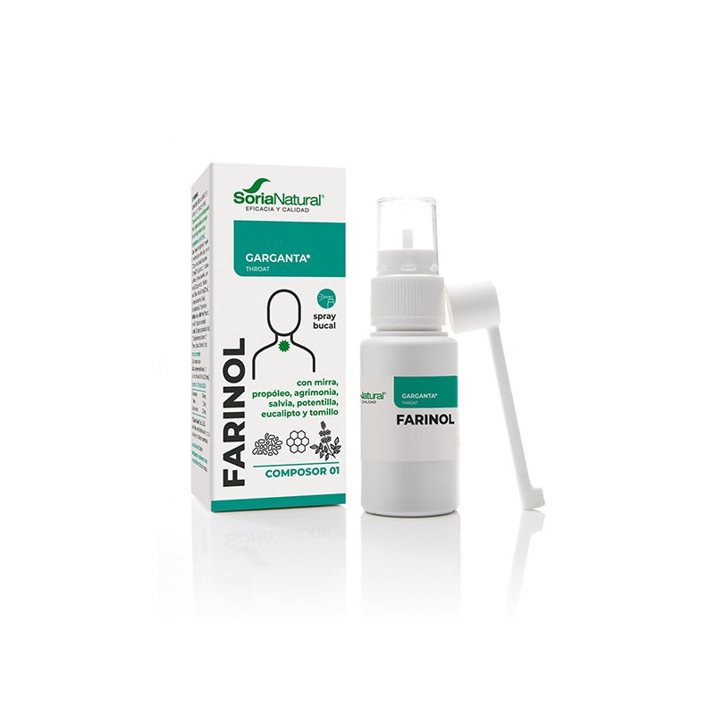 Humectante: glicerina, agua, tintura de Mirra (Commiphora molmol Engler, resina) (120 mg), extracto fluido de Propóleo (Propolis) (118 mg), extracto liofilizado de Agrimonia (Agrimonia eupatoria L., sum. florida) (32 mg), extracto liofilizado de salvia (Salvia officinalis L., hoja) (29 mg), gamma-ciclodextrinas (25 mg), alfa-ciclodextrinas (17 mg), extracto liofilizado de potentilla (Potentilla erecta L., rizoma) (13 mg), aceite esencial de Eucalipto (Eucalyptus globulus Labill, hoja) (1,6 mg), aceite esencial de Tomillo (Thymus vulgaris L. , P. aérea) (1,6 mg).