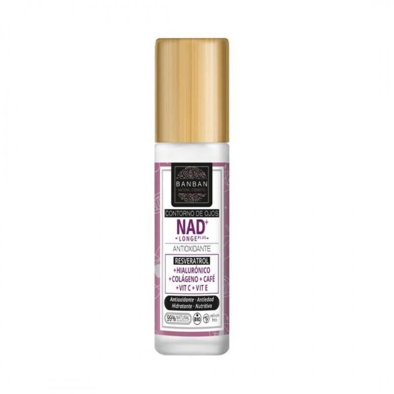 Contorno de ojos antioxidante, efecto frío, 99% natural, con una potente fórmula innovadora y revolucionaria de activos como NAD+, resveratrol, ácido hialurónico, colágeno, café, ginkgo biloba, vitamina E y vitamina C entre otros. Este contorno destaca por su gran poder antioxidante y antiedad, además de hidratar intensamente y nutrir gracias a las ceramidas de jojoba. También mejora la circulación del contorno del ojo, eliminando rojeces, gracias a la cafeína y ginkgo biloba. Gracias a su poder de regeneración celular es capaz de combatir el estrés oxidativo, consiguiendo una mirada más joven y descansada.