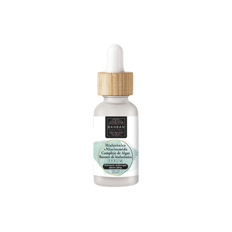El serum natural de ácido hialurónico + niacinamida, complejo de algas y booster de hialurónico, actúa en tu piel, en profundidad, hidratando, reduciendo arrugas, con efecto lifting y reafirmante de la piel. Con más de un 97% de ingredientes de origen natural. De textura suave y fresca, apto para todo tipo de pieles.