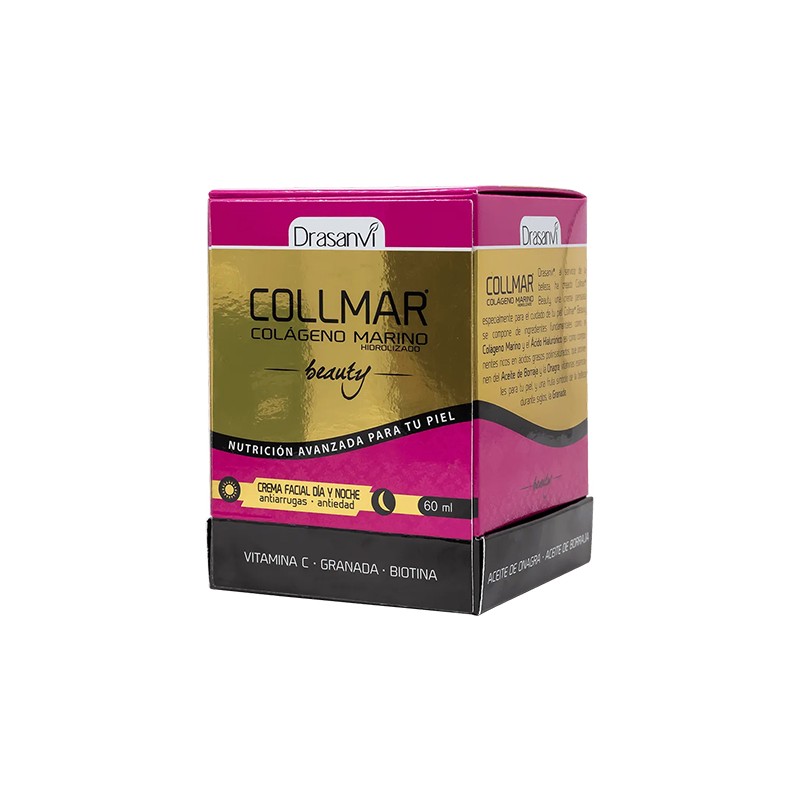 Collmar crema de acción noche y acción día con efecto antiarrugas y reparador celular. La sinergia de sus ingredientes actúa contra los signos de envejecimiento prematuro como son falta de firmeza, arrugas, líneas de expresión y pérdida de hidratación. La piel, a partir de 30 años, sufre numerosos cambios: arrugas, piel seca, pérdida de firmeza y líneas de expresión. Todos estos cambios son consecuencia del descenso de la síntesis de colágeno por parte de nuestra piel. La combinación de los ingredientes con el Colágeno marino hidrolizado ayuda a combatir esta problemática, mejorando el aspecto de la piel.