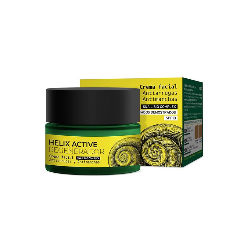 Crema regeneradora a base de extracto de baba de caracol ecológica certificada rica en alantoina, colágeno, elastina y otros micronutrientes que ayudan a hidratar, suavizar y atenuar manchas de la piel. Fórmula sin conservantes parabenos, enriquecida con otros activos ecológicos como el Aloe Vera o el extracto de caléndula que combinados con filtros solares garantizan un cuidado activo de la piel.