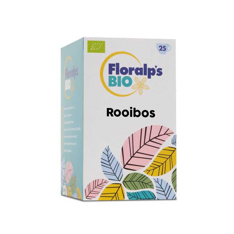 No contiene teína ni cafeína.Composición de Infusión ecológica de Té Rooibos 25 filtros